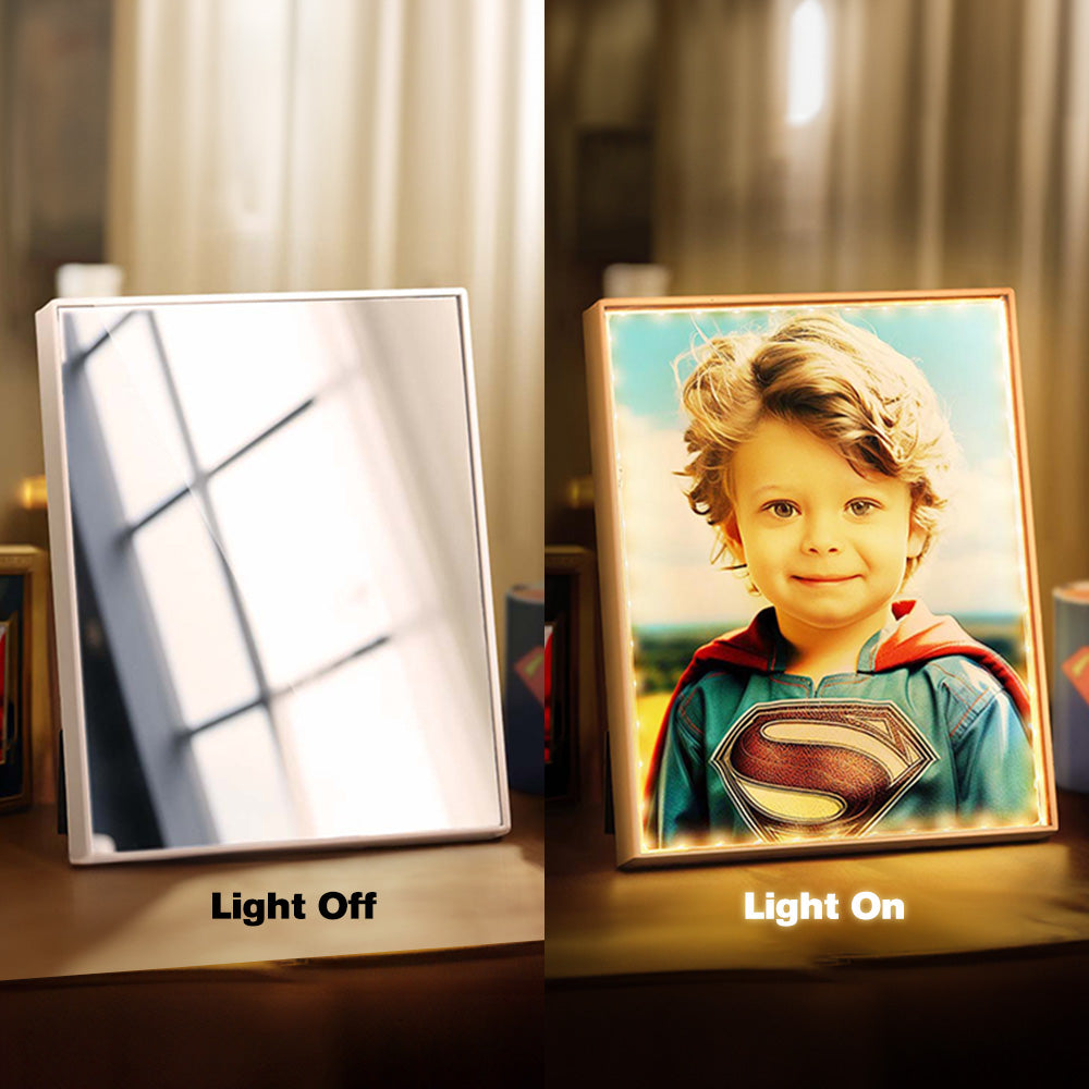 Custom Face Superman Mirror Light Gifts for Kids / Son Personalized Portrait from Photo
