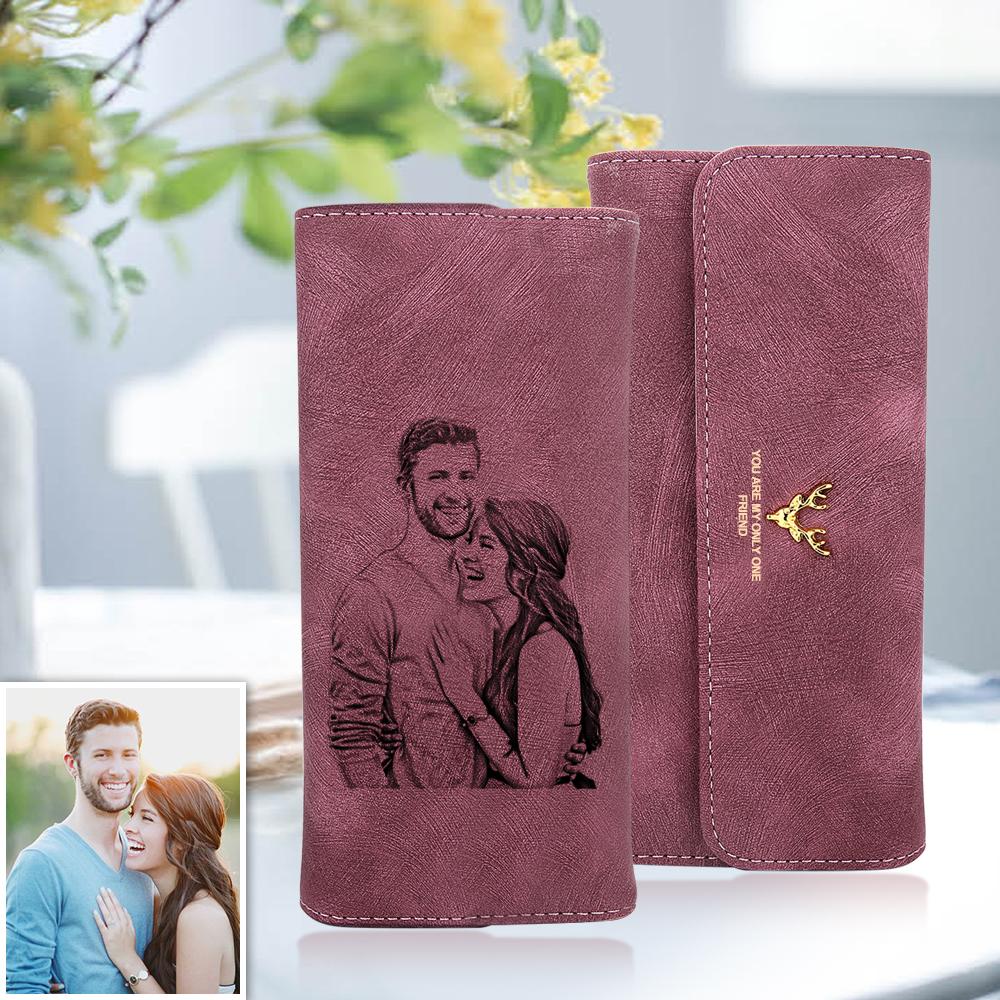 Personalized Wallet | Custom Photo Engraved Wallet | Women's Trifold Long Leather Wallet