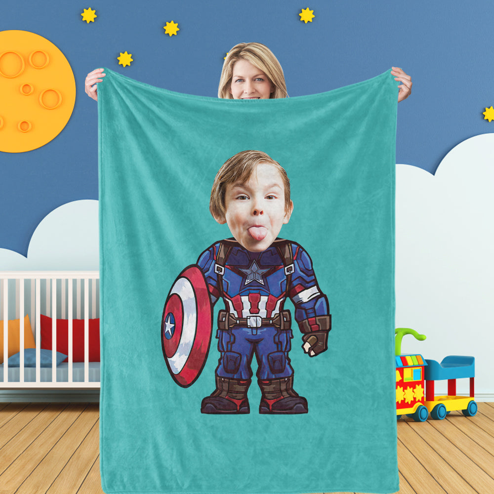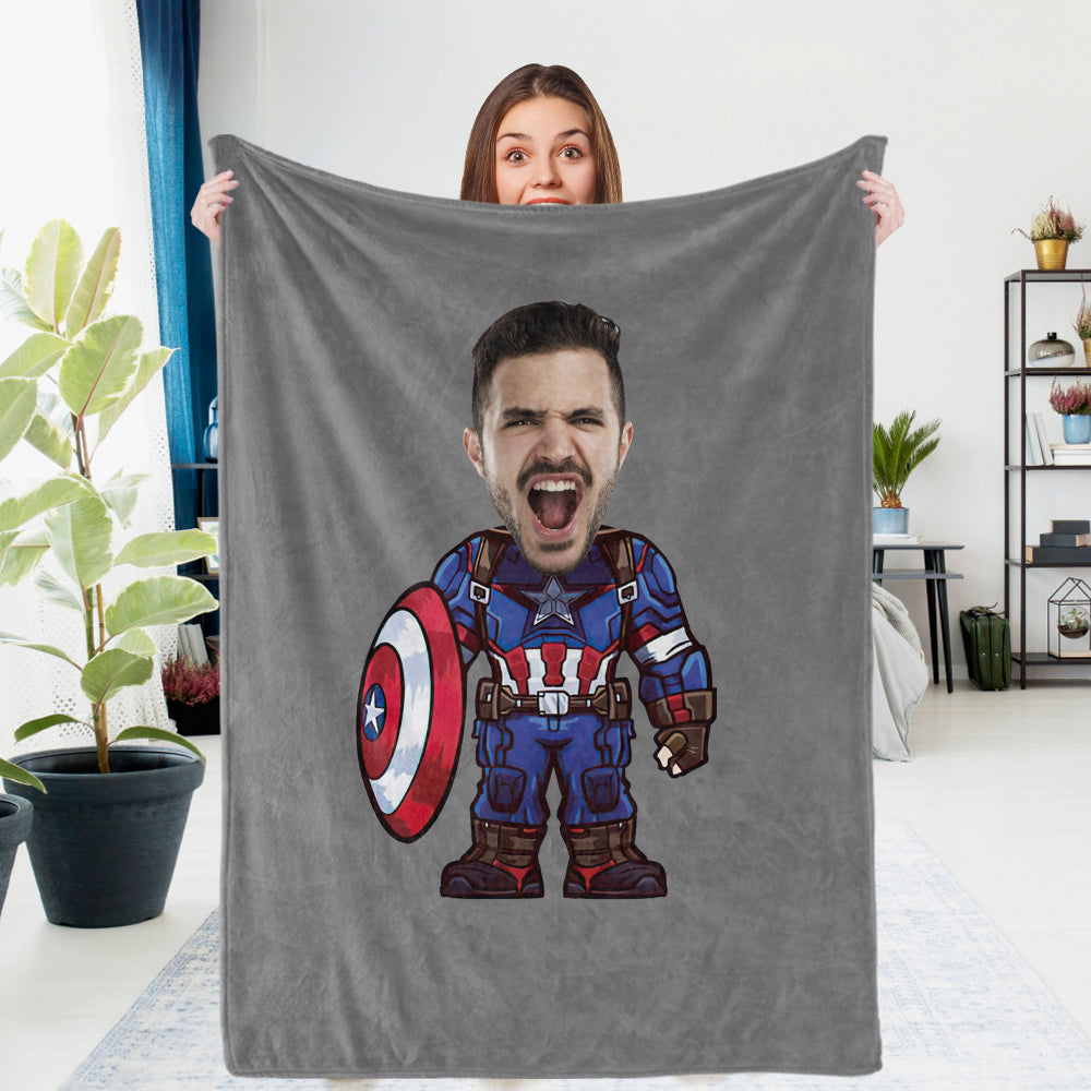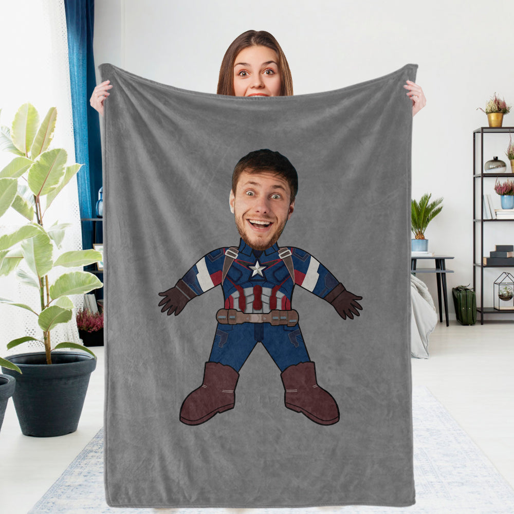Gifts for Son Custom Capatin American Blankets Custom Photo Blanket Personalized Face Blanket