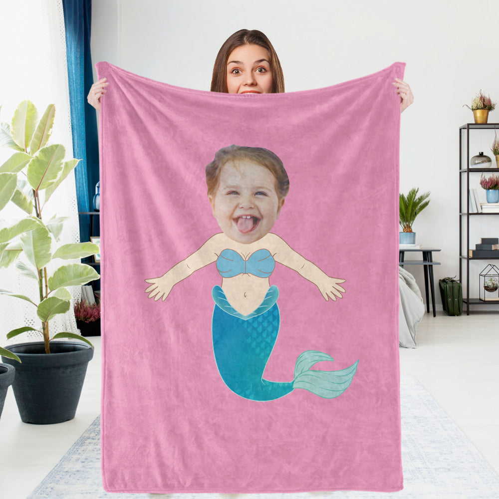 Custom Photo Blanket Unique Blue Mermaid Personalized Photo Gifts Unique Customized Gifts