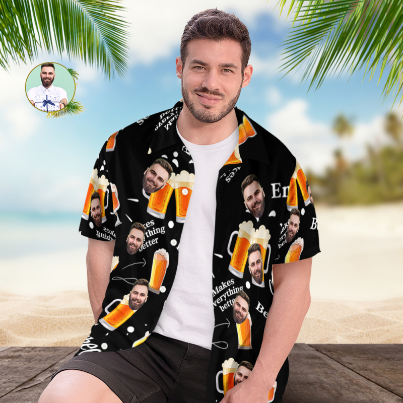 Custom Beer Hawaiian Shirt for Men, Personalized Party Group Hawaii Shirts with Face, Customize Mens Funny Face Shirt Beer Shirts