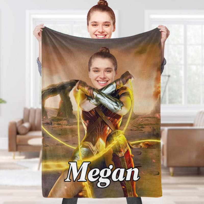 Custom Face Blanket Personalized Photo and Text Invincible Wonder Woman Blanket Minime Blanket Best Gift For Him