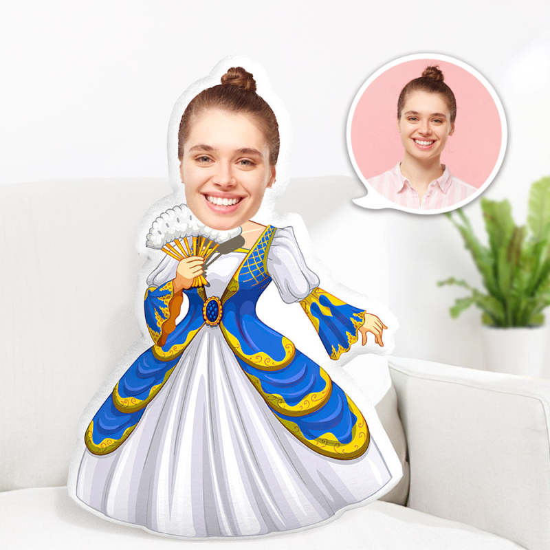 Custom Face Pillow Personalized Photo Pillow Blue Dress Queen Gifts for Her