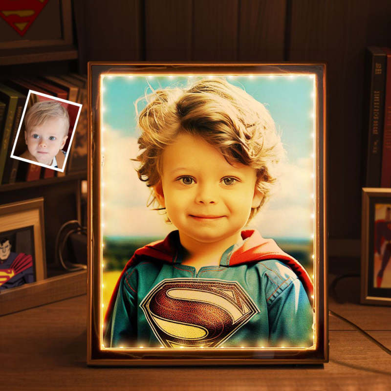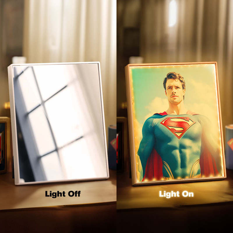 Custom Face Superman Mirror Light Gifts for Kids / Son Personalized Portrait from Photo