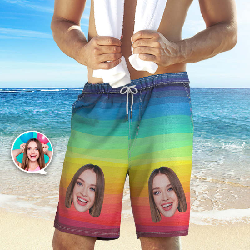 Custom Girlfriend Face Swim Trunks Personalized Beach Shorts Funny Men's Casual Shorts