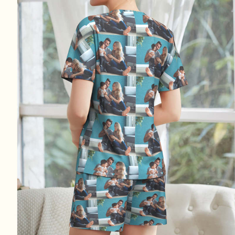 Custom Photo Pajamas Loving Family Short Pajama Set Gift for Women