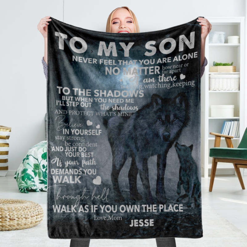 Custom Blankets Personalized Name Fleece Blanket- To My Son The Wolf Of The Night Blanket