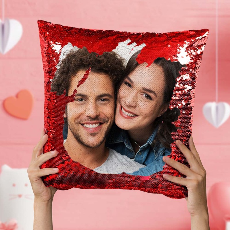 Gfits for Her Personalized Photo Sequin Pillow Full Printing Reversible Pillow Anniversary Gift 15.75" x 15.75"
