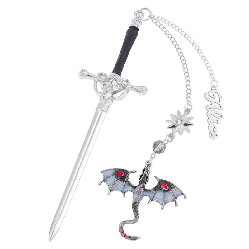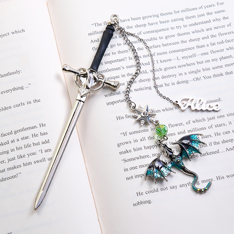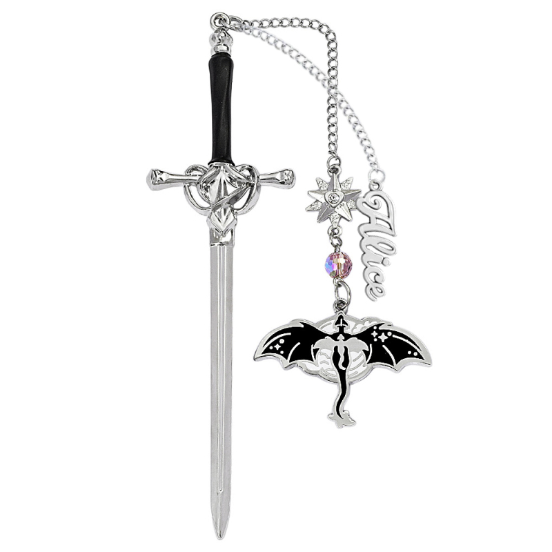 Personalized Dragon Sword Bookmark – Custom Name Fantasy Winged Dragon Metal Charm Gift for Book Lovers