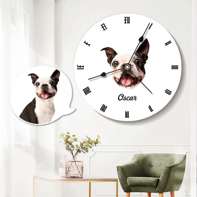 Personalized Photo Engraved Wall Clock Round Lovely Dog