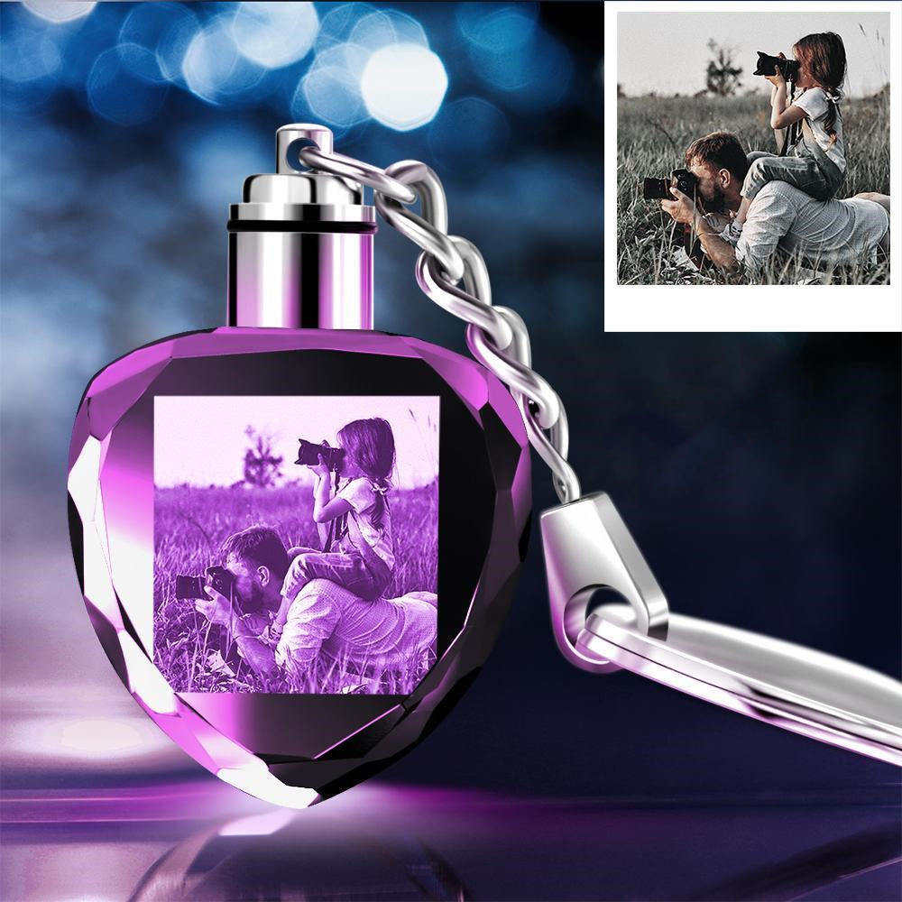 Gifts for Dad Custom Crystal Heart Shape Photo Keychain for Father's Day