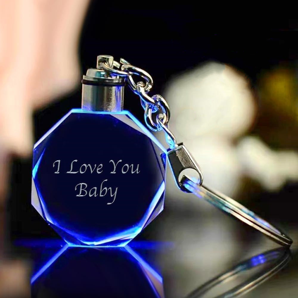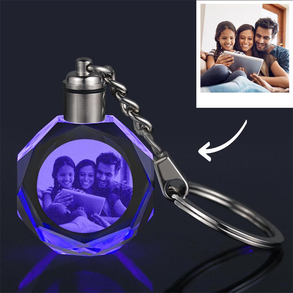 Gifts for Mom Custom Crystal Octagon Shape Photo Keychain