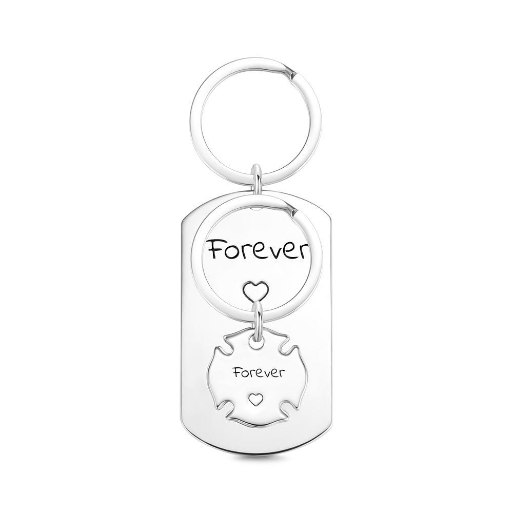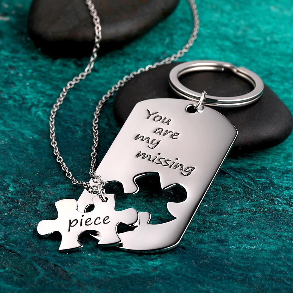 Custom Engraved Couple Keychain and Necklace Set - Puzzle Dog Tag