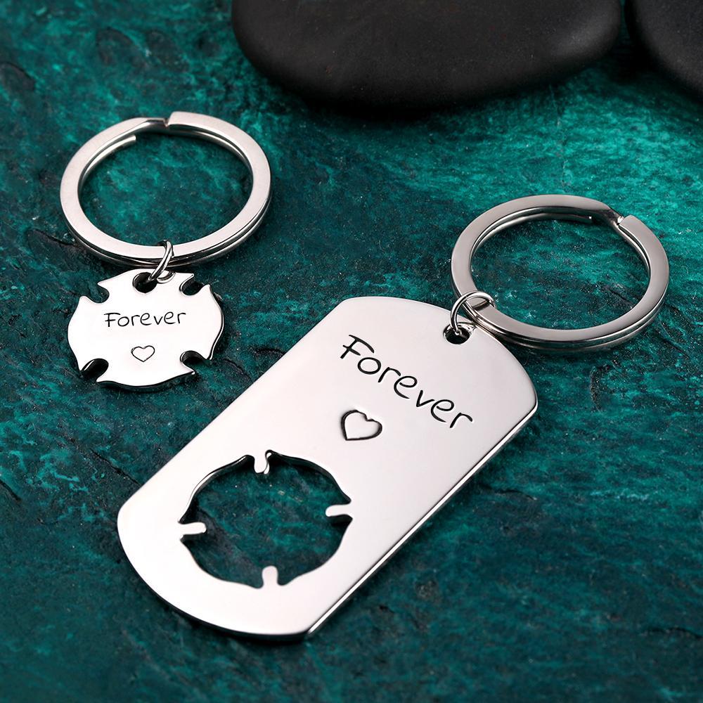 Custom Engraved Couple Keychain Set - Clover Dog Tag