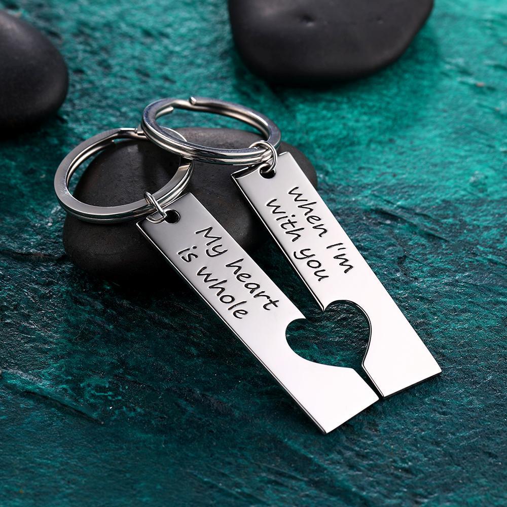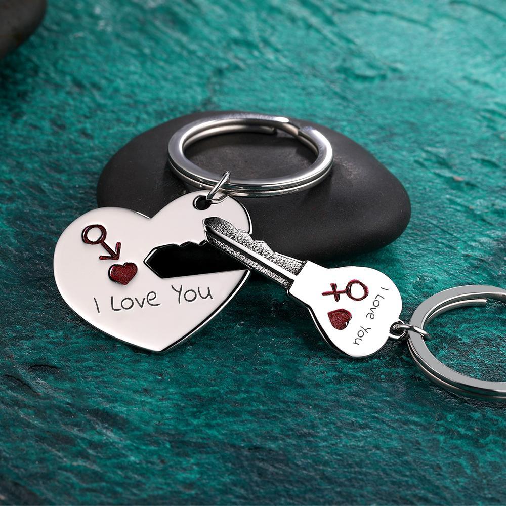 Custom Engraved Heart Lock and Key Couple Keychain Set