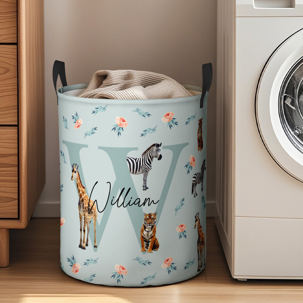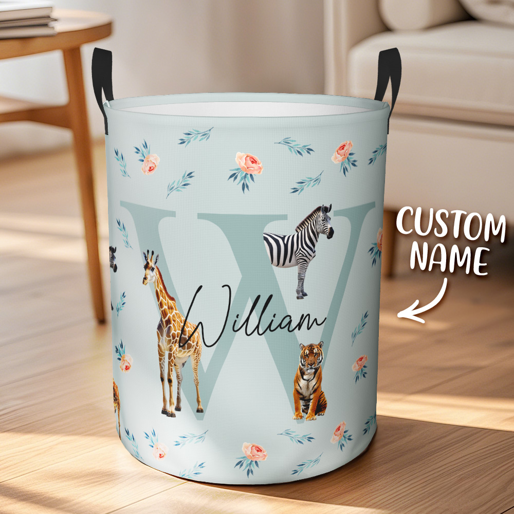 Personalized Jungle Animal Large Toy Laundry Basket with Name and Initial Waterproof Oxford Cloth Baby Shower Housewarming Gift for Family Kids