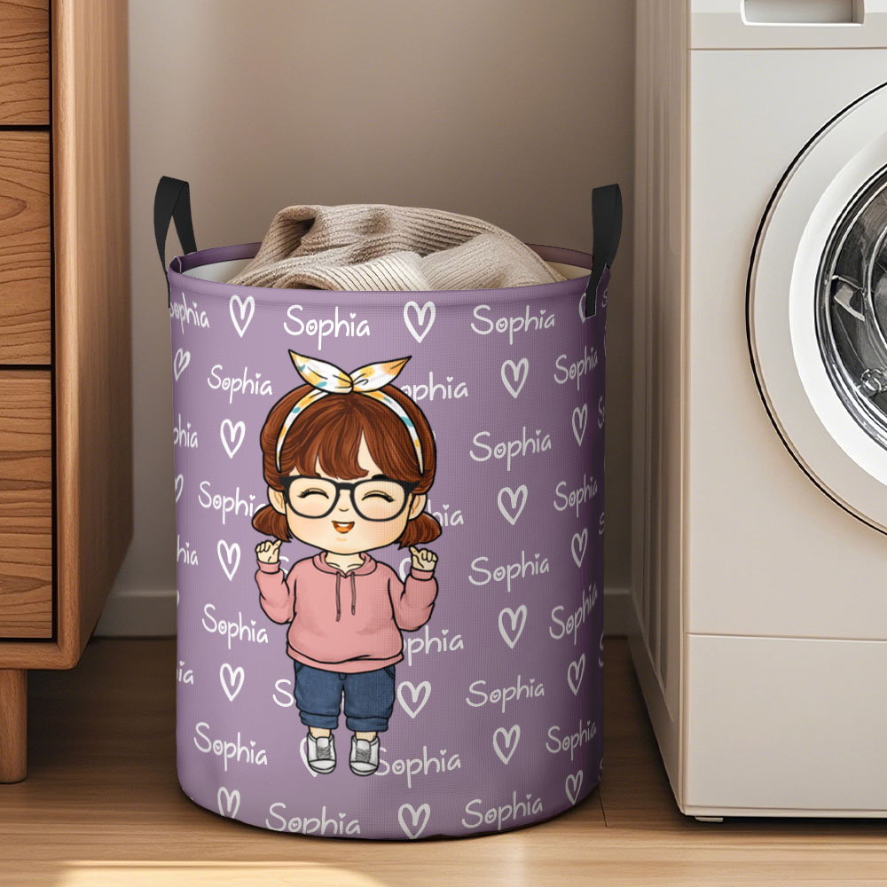 Personalized Cartoon Character Name Laundry Storage Basket Gift for Kids
