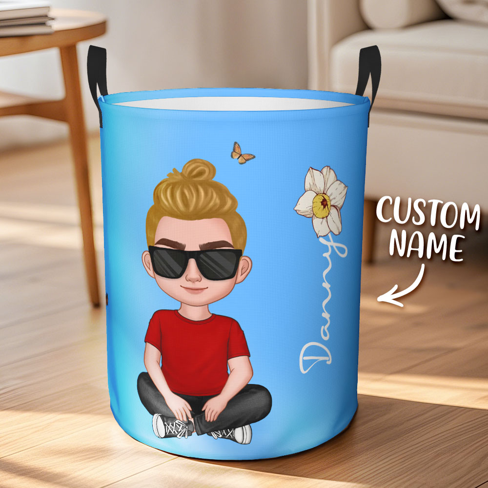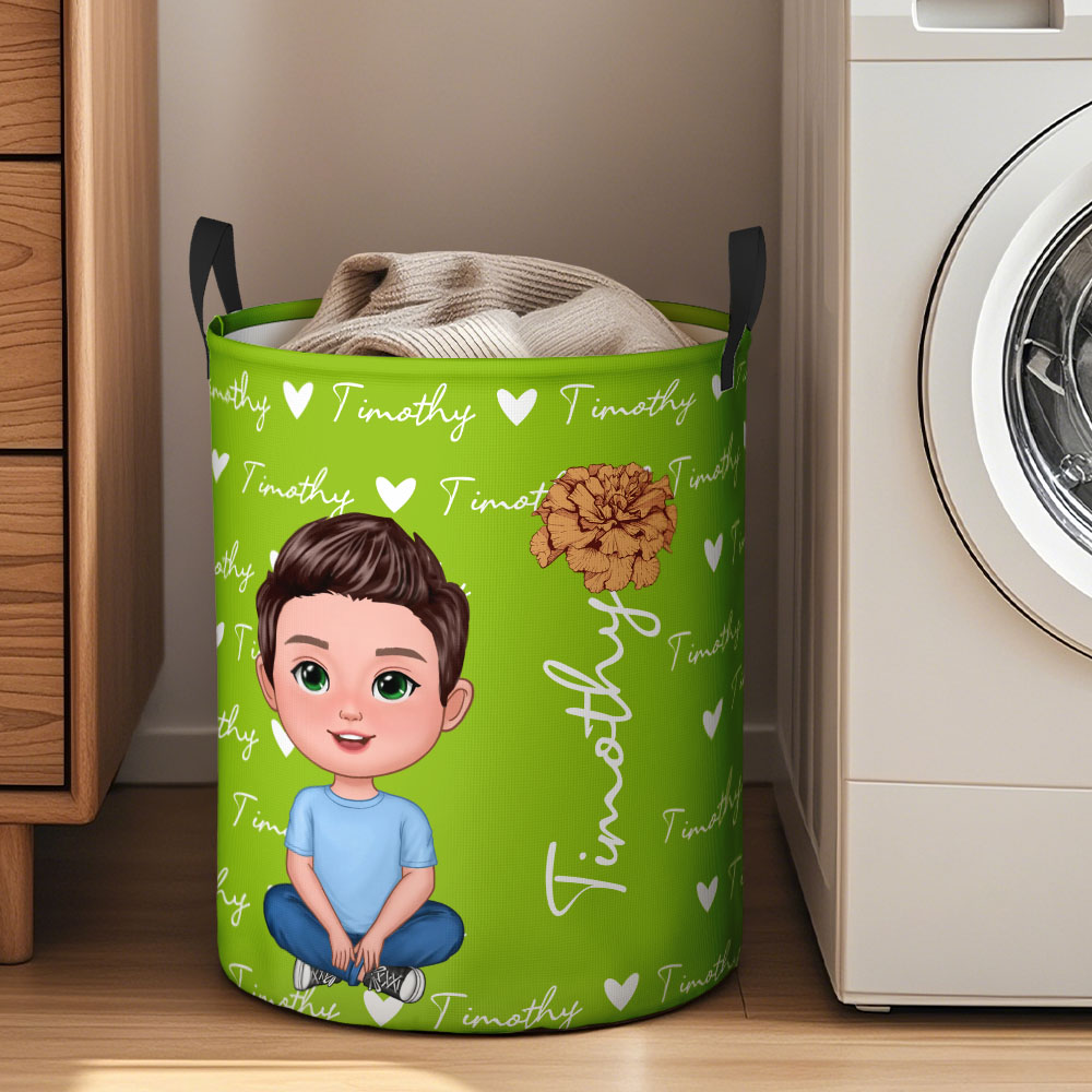 Personalized Cartoon Character Birth Flower Name Laundry Storage Basket