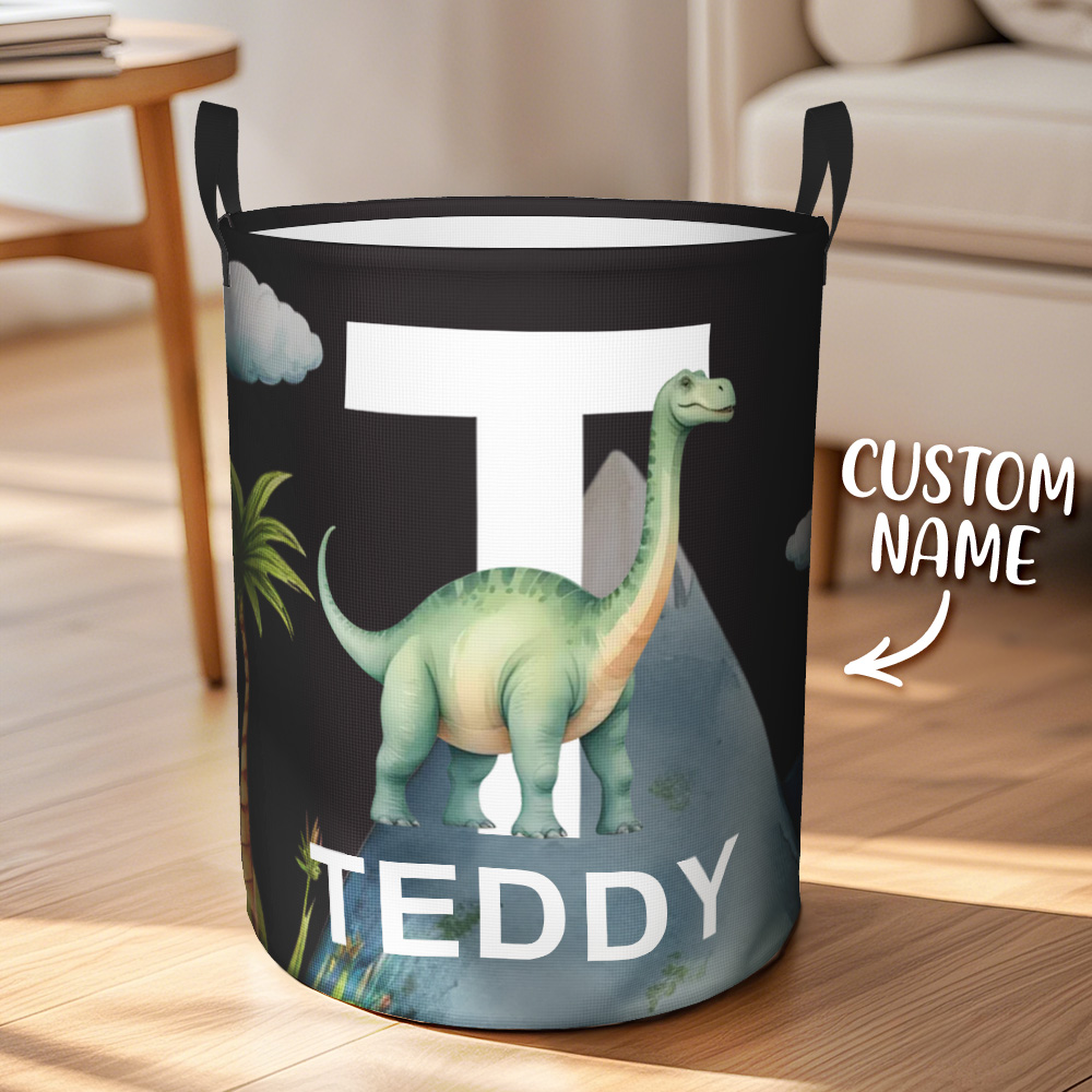 Custom Name Laundry Storage Basket with Dinosaurs for Children