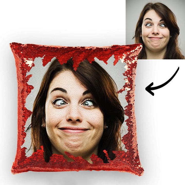 Personalized Photo Sequin Pillow Full Printing Reversible Pillow Gifts for Birthday 15.75" x 15.75"