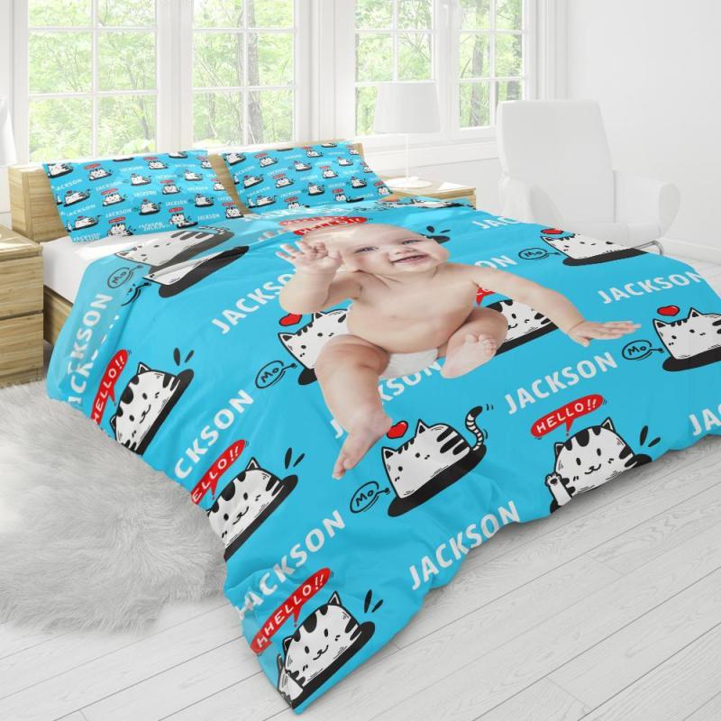 Polyester Fibre Custom Bedding Duvet Cover And Pillowcase Personalized Photo Text Duvet Cover And Pillowcase-The Cute Cat Duvet Cover And Pillowcase
