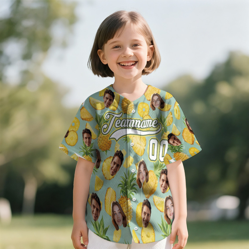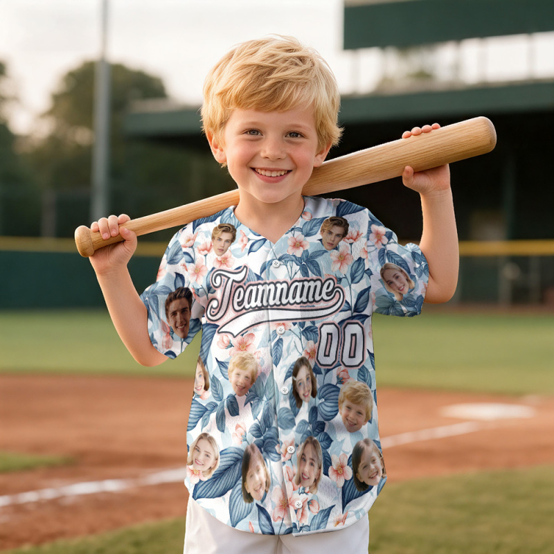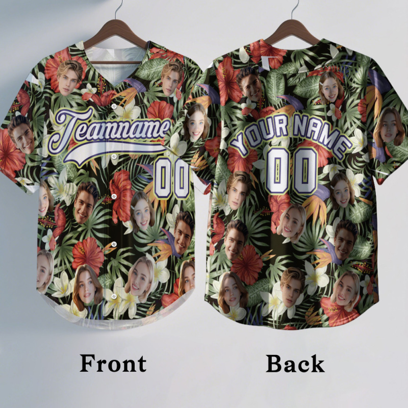 Custom Hawaii Tropical Hibiscus Shirt for Kids Custom Hawaiian Baseball Jersey with Face Teamname Name Number