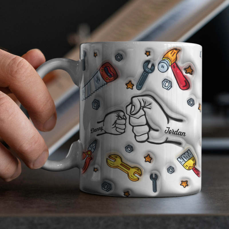 Father's Day Gifts Personalized Names Custom 3D Inflated Effect Printed Mug 1-6 Kids