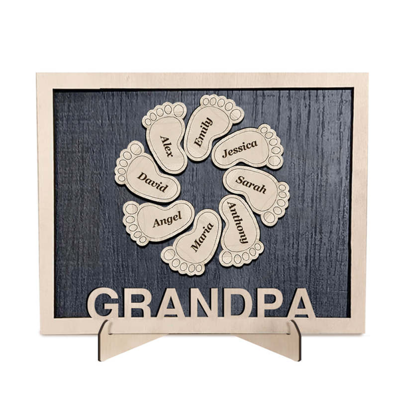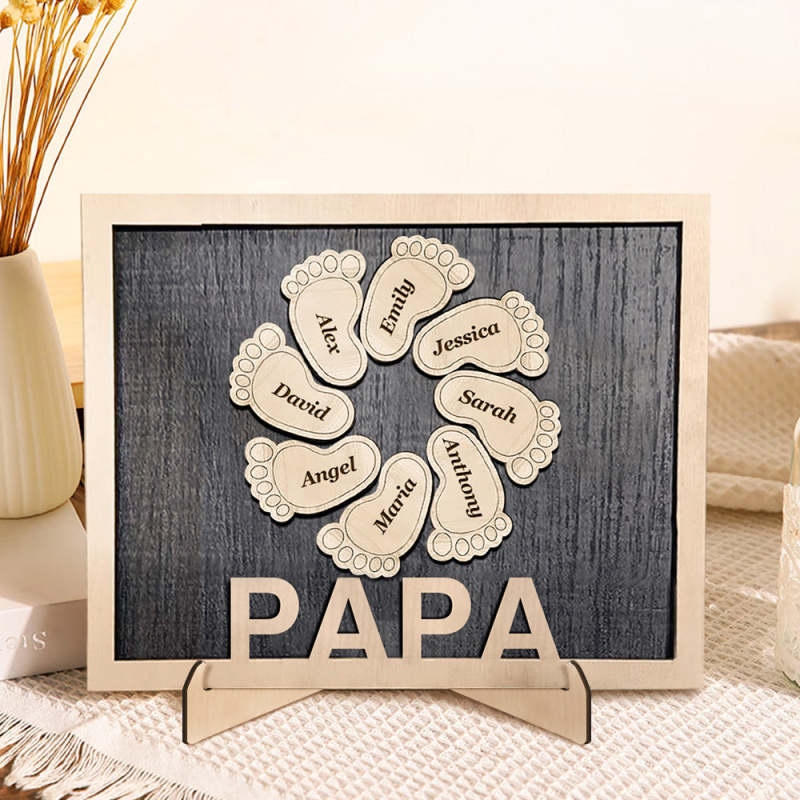 Personalized Footprint Wooden Plaques Decor with Kids Names For Dad Grandpa Decor Plaque