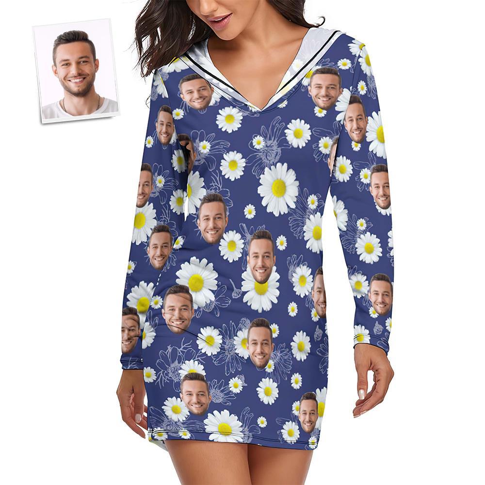 Custom Face Pajamas Women's Pajama Sets Long-sleeved Dress Summer Sleepwear - Chrysanthemum