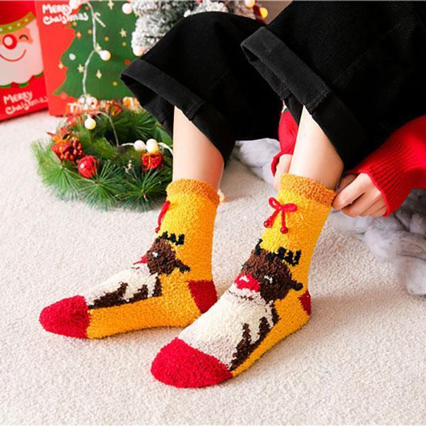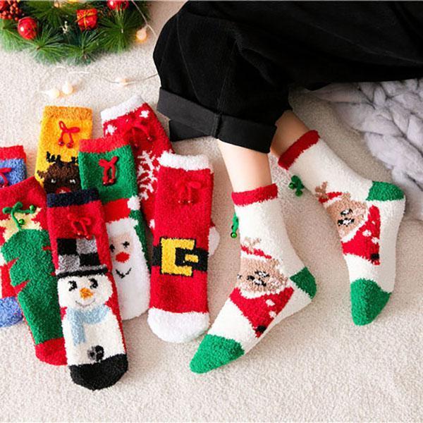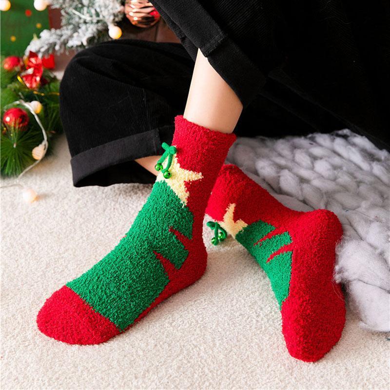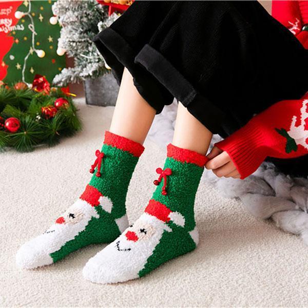 Christmas Jingle Bell Plush Socks Colorful Warm Xmas Fuzzy Socks Fluffy Bed Socks for Adult & Kids - 4 Pairs