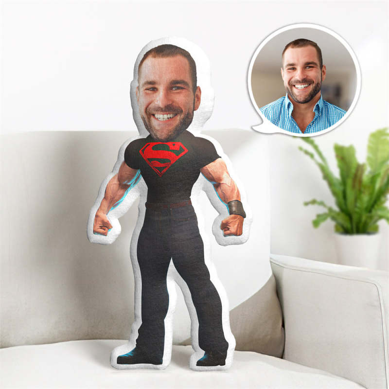 Custom Face Pillow Photo Superhero Doll Personalized Tough Guy MiniMe Pillow Gifts for Him