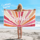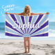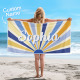 Custom Beach Towel with Name Vintage Style Stripe Pattern Summer Vacation Party Girl Trip Towel Gift
