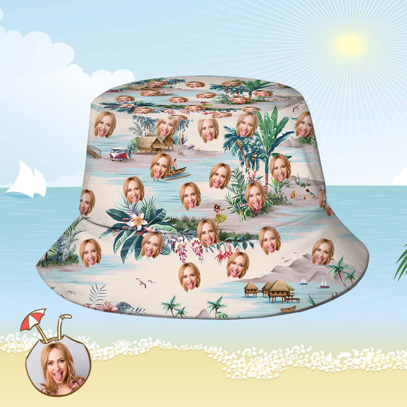 Custom Bucket Hat Personalized Face All Over Print Tropical Flower Print Hawaiian Fisherman Hat - Sea View