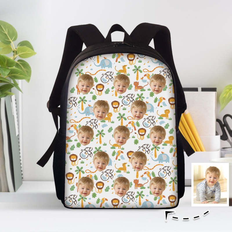 Custom Face Backpack Personalised Animal School Bag for Kids