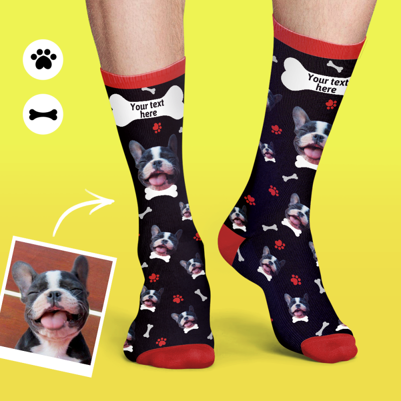 Personalized Socks Custom Photo Socks Dog Photo Socks With Your Text - Black