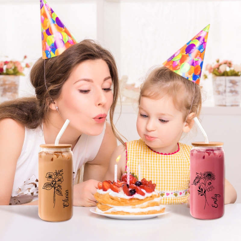 Personalized Name Can Glass with Birth Flower Custom Can Glass with Straw Gift for Mother Friends Family Bridesmaid