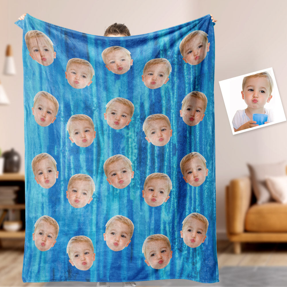 Custom Blankets Personalized Photo Face Blue Water Pattern