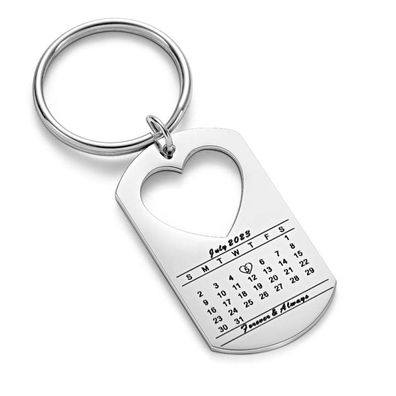Anniversary Gift Unique Calendar Keychain Personalized Date Engraved for Husband Keychains Engagement Gift for Him
