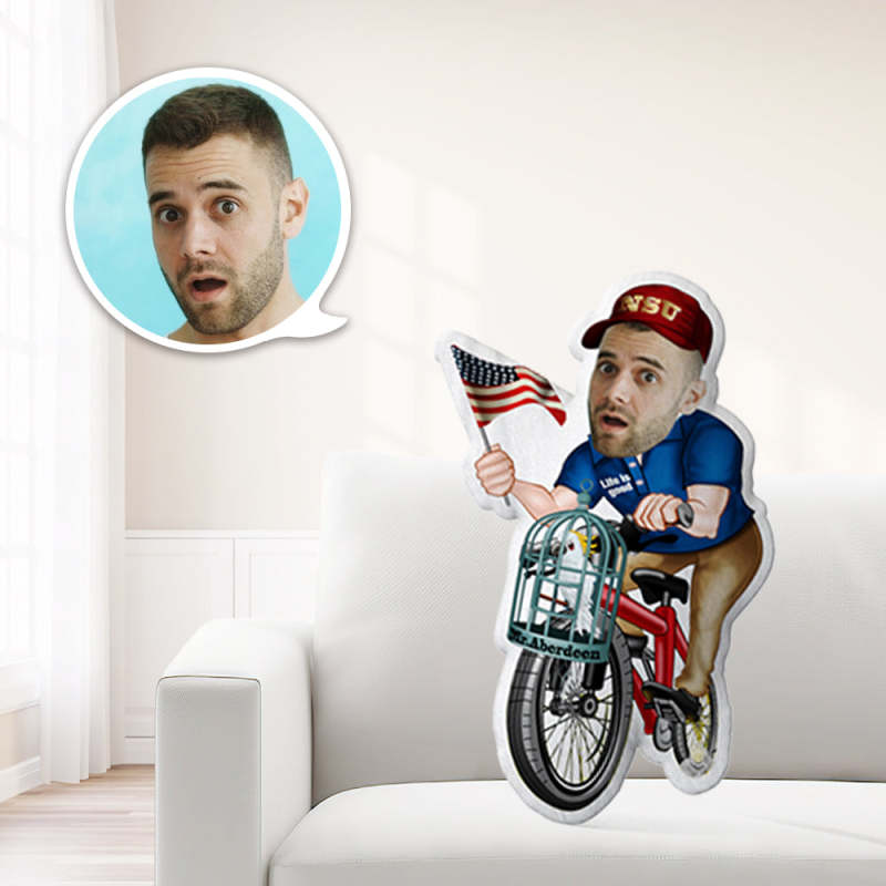 Face Dolls Custom Bicycle Male Holding A Banner Toys Personalized Photo My face on Pillows Unique Personalized Throw Pillow A Truly Funny Gift