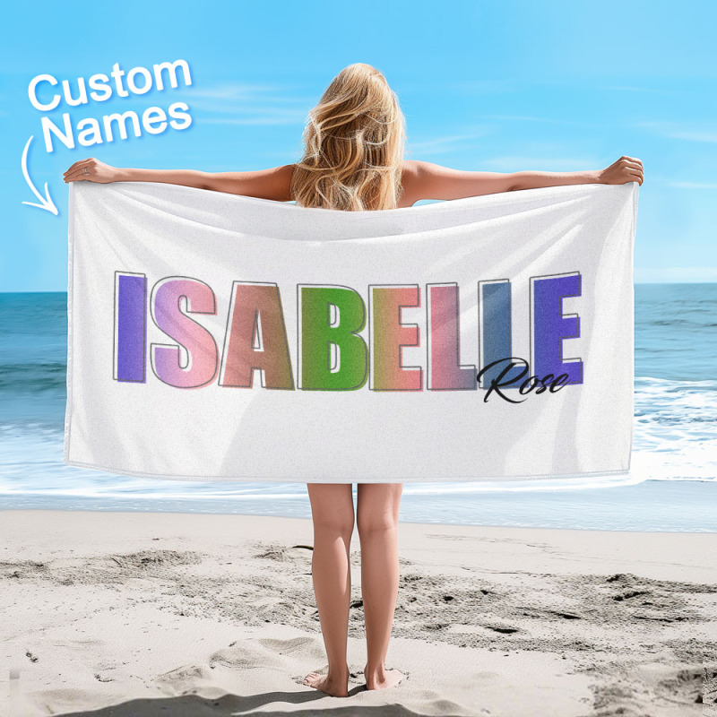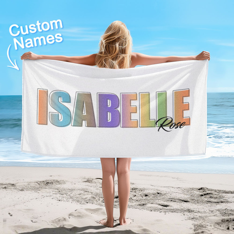 Custom Beach Towel with Rainbow Name Personalized Multi-color Monogram Beach Towel