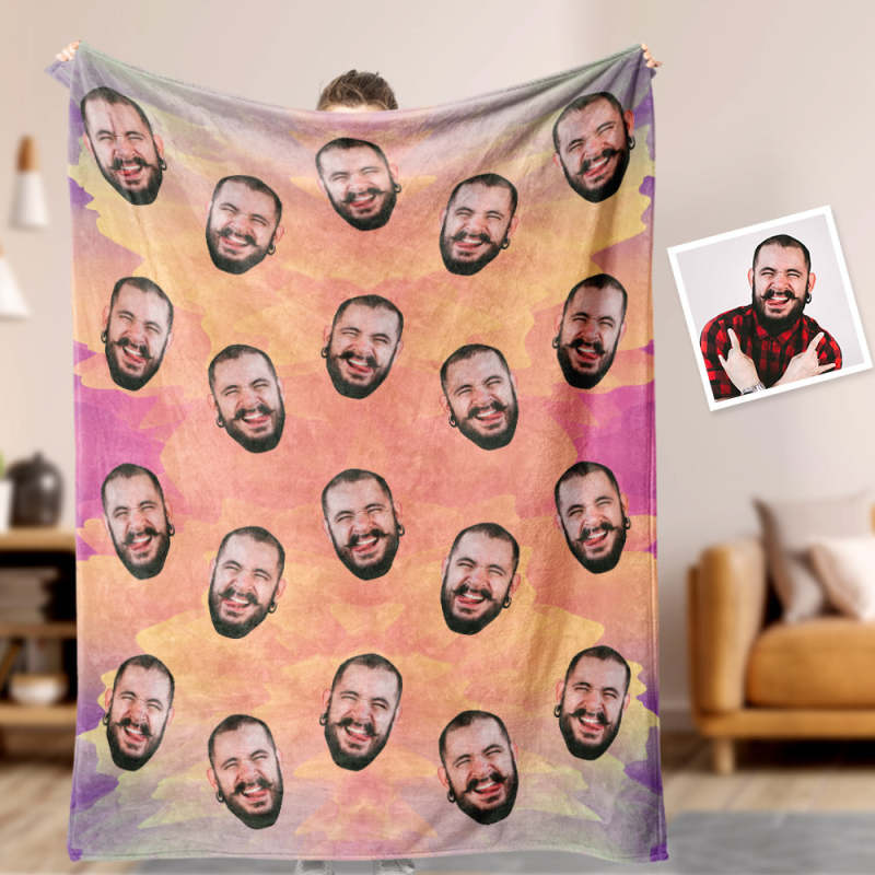 Custom Blankets Personalized Photo Face Colorful Pattern