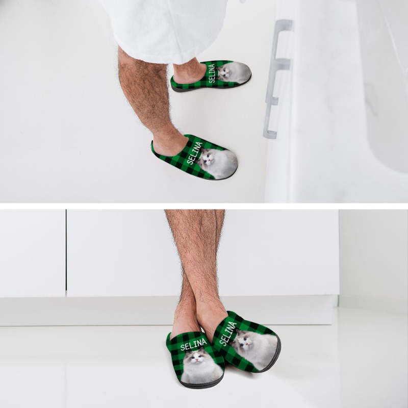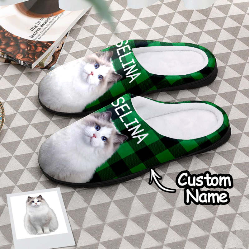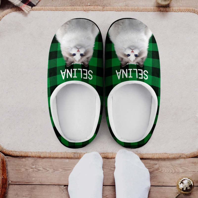 Custom Cat Photo Women's and Men's Slippers Personalized Casual House Cotton Slippers Christmas Gift For Pet Lover