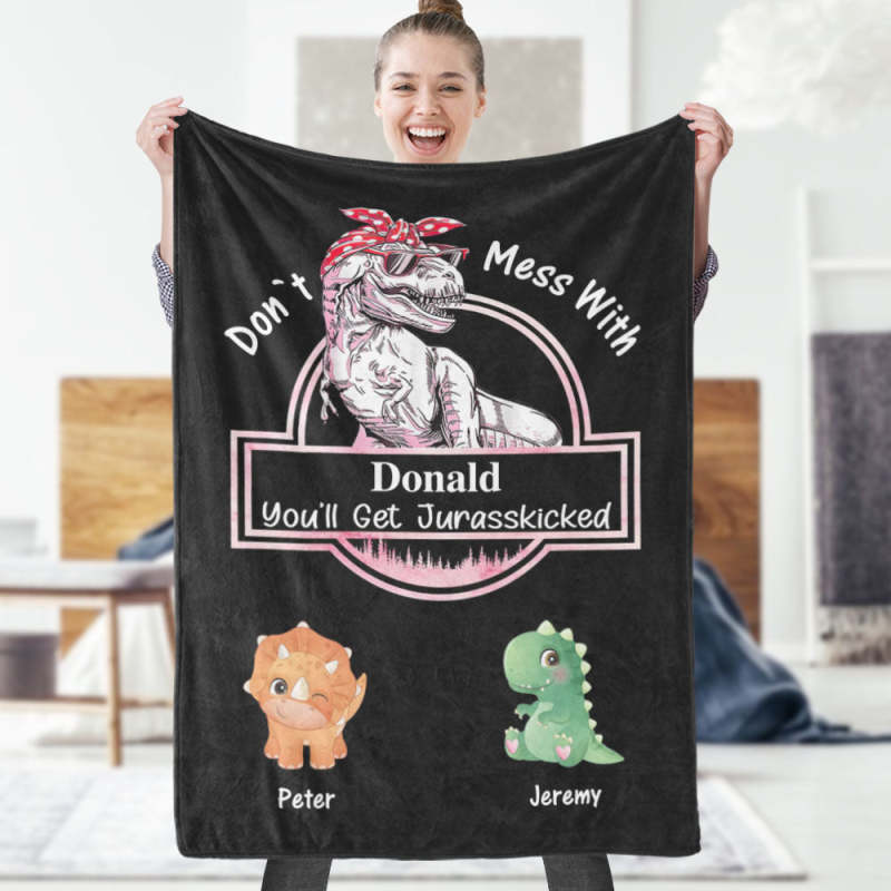 Custom Engraved Blanket Custom Dinosaurs Don't Mess With Mamasaurus Best Gift For Mother