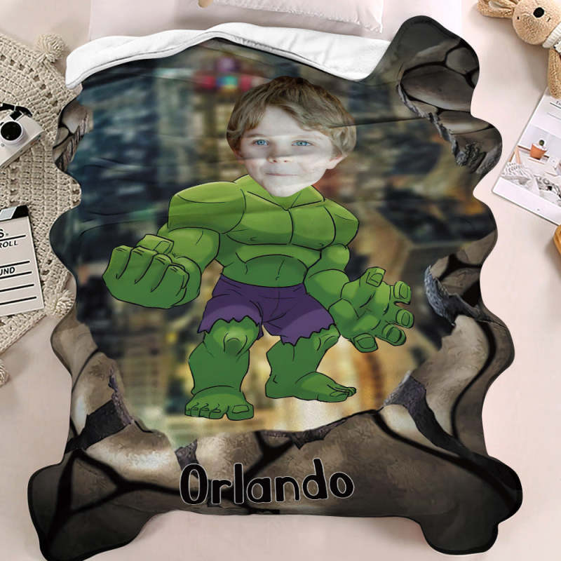 Custom Face Blanket Personalized Photo and Text Blanket Hulk Minime Blanket Best Gift For Him