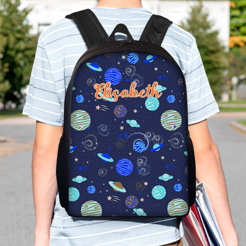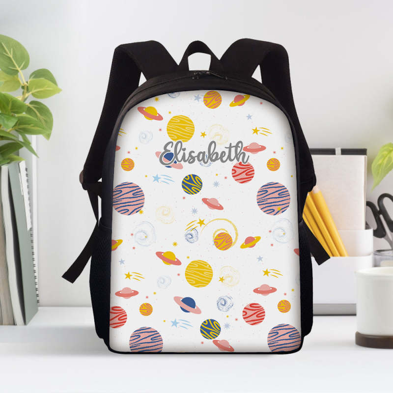 Custom Name Backpack Personalised Planet School Bag for Kids