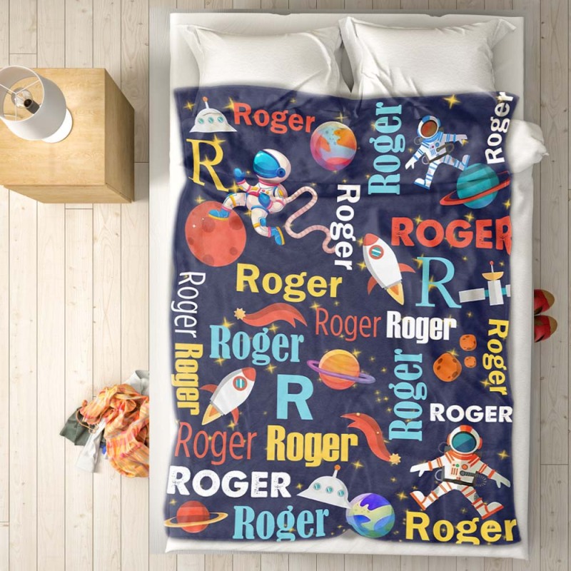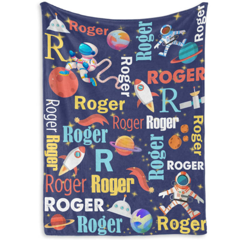 Custom Name Blanket Space Astronauts Kid's Fleece Blanket for Kindergarten Preschool Nursery