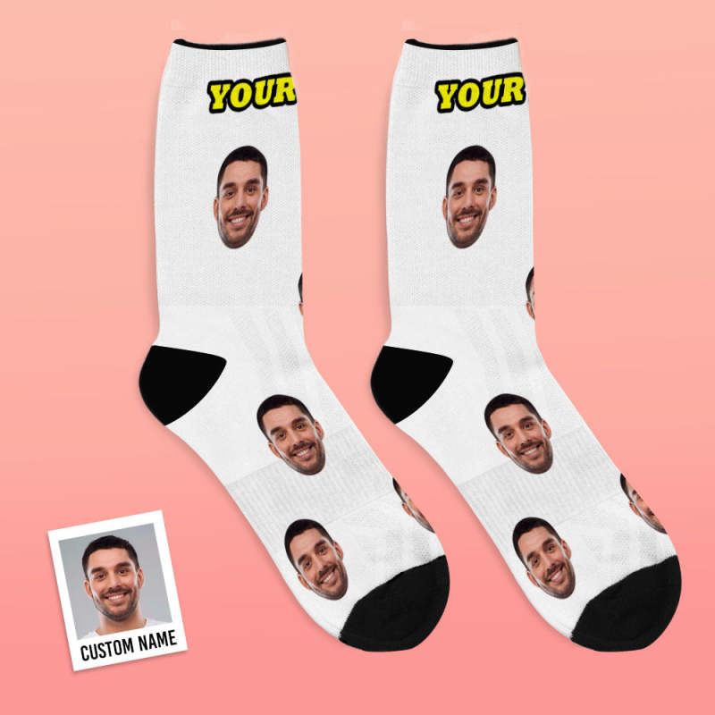 Custom Photo Socks Breathable Face Socks Solid Color Gift For Him