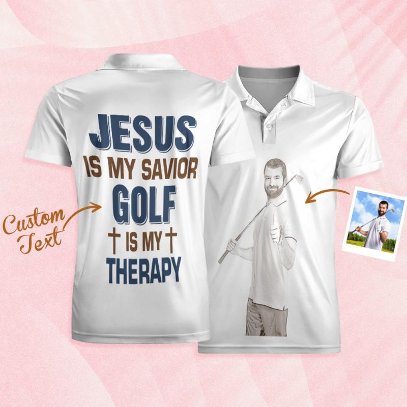 Golf Is My Therapy Polo Shirt Custom Photo Men 's Polo Shirt Personalized Polo Shirt For Golf Lovers