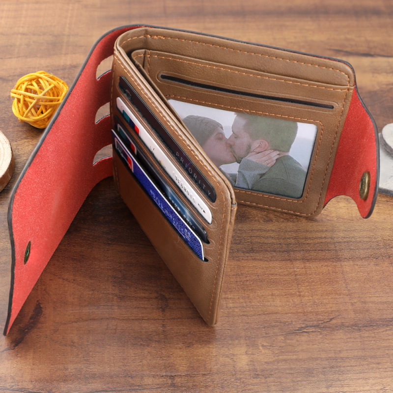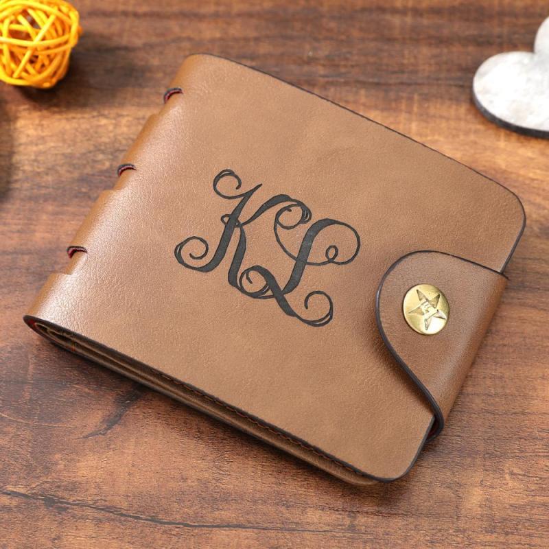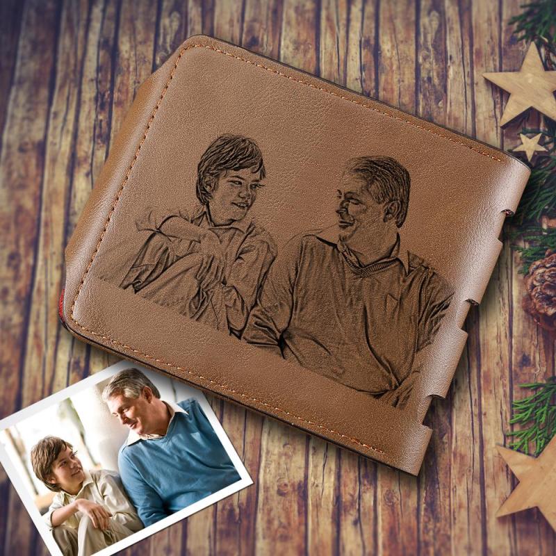 Men's Trifold Custom Sketch Photo Wallet With Engraving Monogram Letter