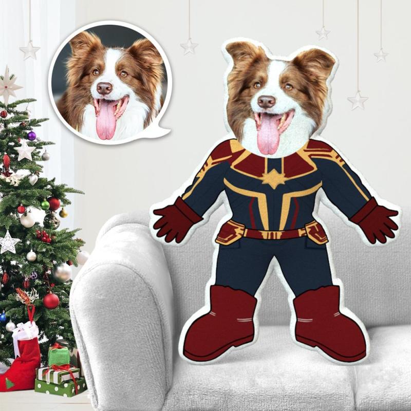 Dog Photo Pillow Dog Face Pillow Personalized Dog Pillow Custom Dog Pillow Dog Picture Pillow Capitain Marvel Costume MiniMe Dog Costume Pillow Doll